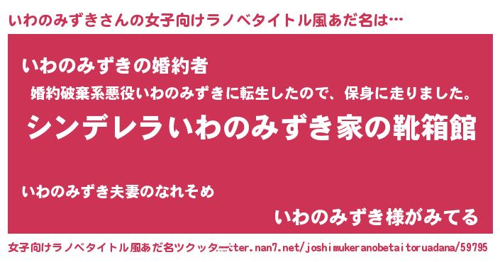 | 意味不明あだ名 | 『いわのみずきフォーエバー』 |