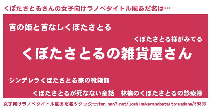 | 男性向けラノベタイトル風あだ名 | 『やはりくぼたさとるの青春ラブコメはまちがっている 』 |