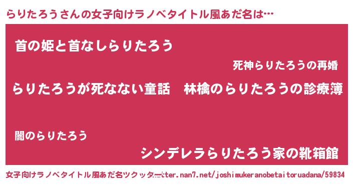 | 意味不明あだ名 | 『住所不定無職らりたろう(43歳)』 |