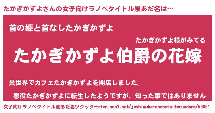 | 男性向けラノベタイトル風あだ名 | 『やはりたかぎかずよの青春ラブコメはまちがっている 』 |