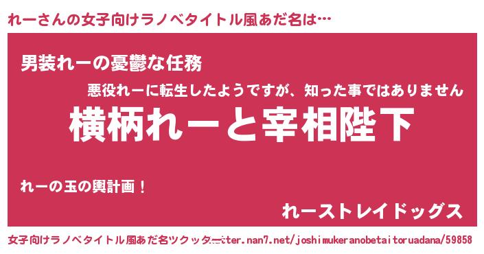 | 男性向けラノベタイトル風あだ名 | 『れーに滅ぼされるだけの簡単なお仕事です』 |