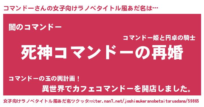 | 男性向けラノベタイトル風あだ名 | 『ノーゲーム・ノーコマンドー』 |