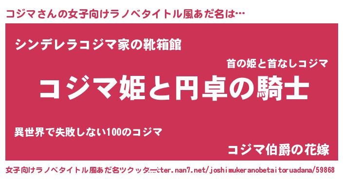 | 胡散臭い通販商品みたいなあだ名 | 『モテモテ間違いなし霊験あらたかなお札…その名も「コジマ」』 |