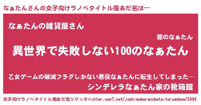 | 男性向けラノベタイトル風あだ名 | 『なぁたんという概念が存在しない退屈な世界 』 |