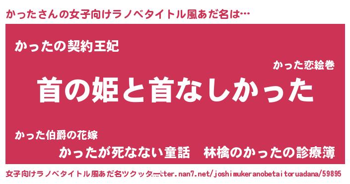 | 胡散臭い通販商品みたいなあだ名 | 『絶対に幸福をもたらす健康食品…その名も「かった」』 |