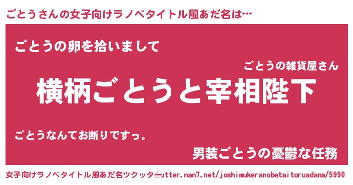 | 男性向けラノベタイトル風あだ名 | 『ごとうに滅ぼされるだけの簡単なお仕事です』 |