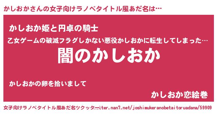 | 男性向けラノベタイトル風あだ名 | 『Re:かしおかから始める異世界生活』 |