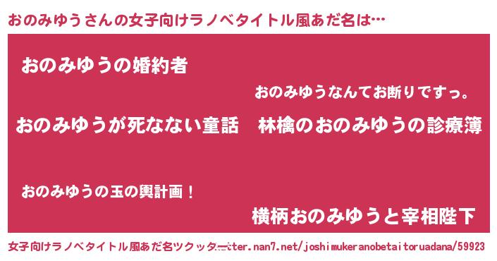 | ヒーロー風カッコイイあだ名 | 『仮面オノダー』『最強戦士オノミユウ』 |