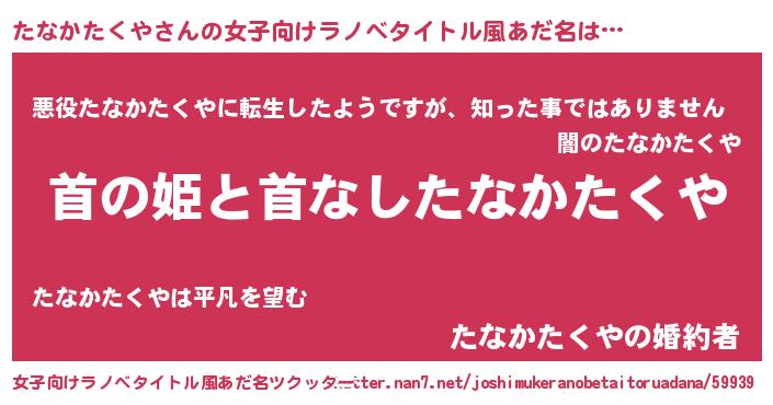 | 男性向けラノベタイトル風あだ名 | 『はたらくたなかたくやさま!』 |