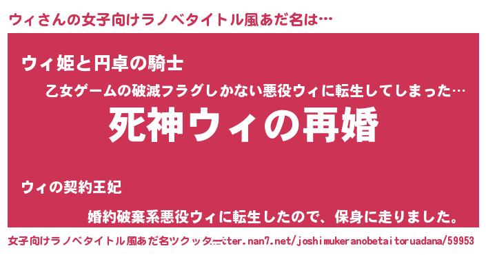 | 男性向けラノベタイトル風あだ名 | 『ノーゲーム・ノーウィ』 |