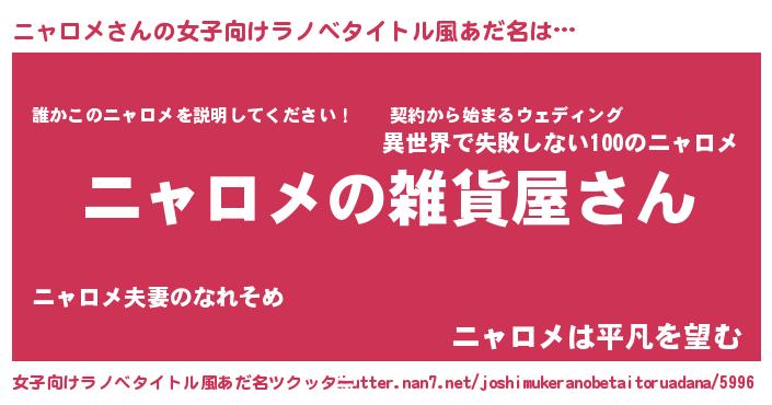 | 男性向けラノベタイトル風あだ名 | 『やはりニャロメの青春ラブコメはまちがっている 』 |