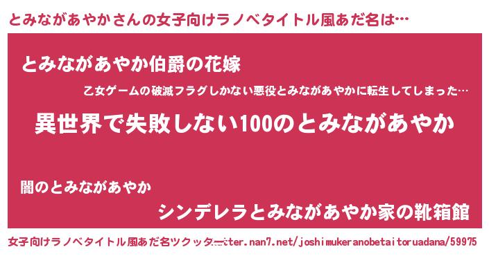 | 男性向けラノベタイトル風あだ名 | 『とみながあやかという概念が存在しない退屈な世界 』 |