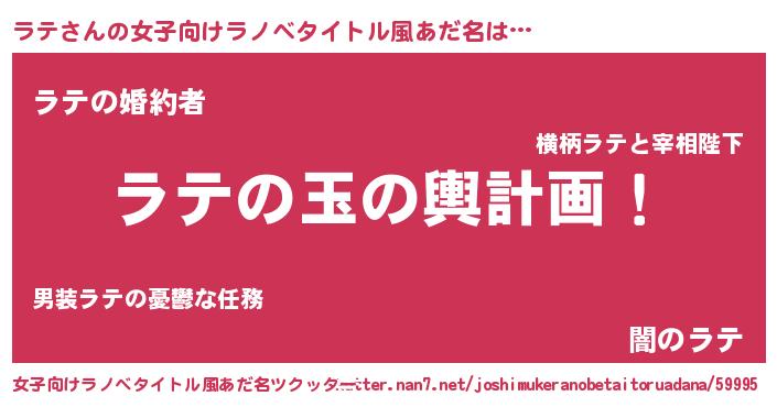 | 胡散臭い通販商品みたいなあだ名 | 『運命の人と巡り会える高級そうな壺…その名も「ラテ」』 |