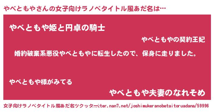 | 胡散臭い通販商品みたいなあだ名 | 『必ず成功する霊験あらたかなお札…その名も「やべともや」』 |