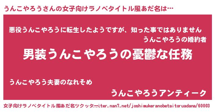 | 意味不明あだ名 | 『住所不定無職うんこやろう(79歳)』 |