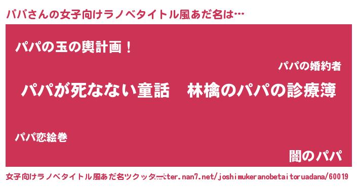 | 意味不明あだ名 | 『住所不定無職パパ(39歳)』『自称パパ』 |