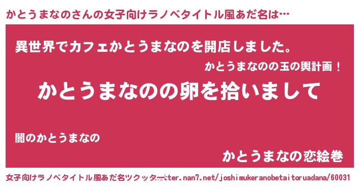 | 胡散臭い通販商品みたいなあだ名 | 『伝統あるサプリメント…その名も「かとうまなの」』 |