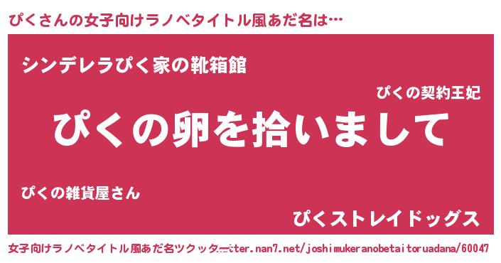| 男性向けラノベタイトル風あだ名 | 『ぴくの嫁は女の子じゃないと思った?』 |