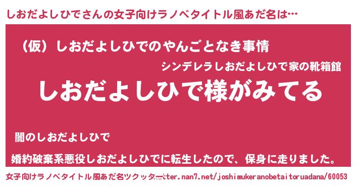 | 意味不明あだ名 | 『とにかく怪しいしおだよしひで』 |