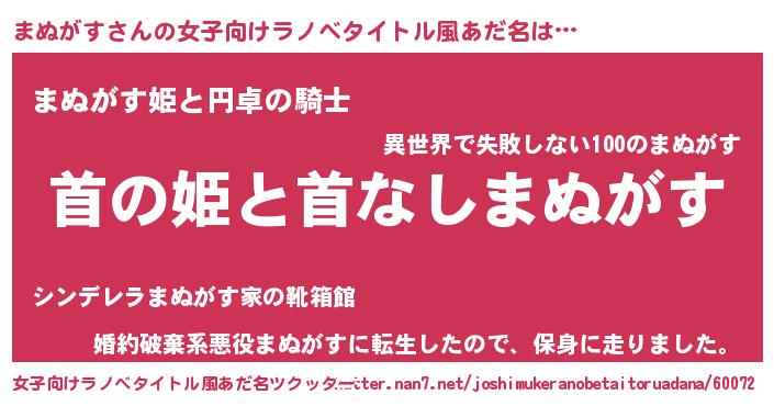 | 胡散臭い通販商品みたいなあだ名 | 『必ず成功する霊験あらたかなお札…その名も「まぬがす」』 |