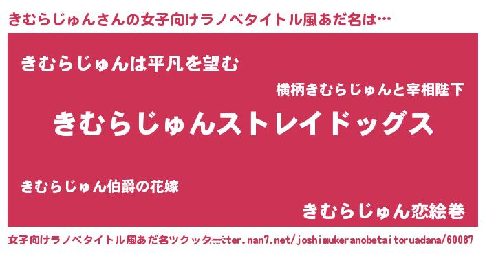 | 男性向けラノベタイトル風あだ名 | 『Re:きむらじゅんから始める異世界生活』 |