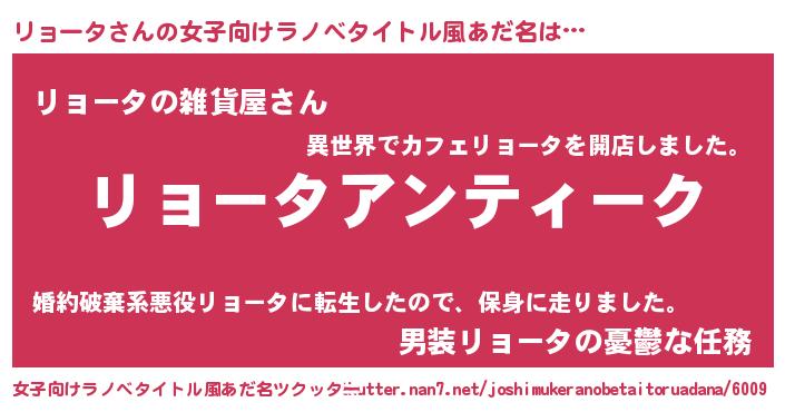 | 男性向けラノベタイトル風あだ名 | 『魔法科高校のリョータ』 |