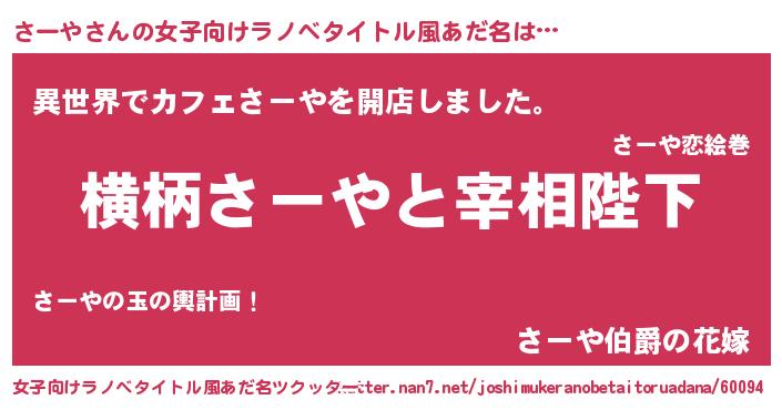 | 男性向けラノベタイトル風あだ名 | 『さーやに滅ぼされるだけの簡単なお仕事です』 |