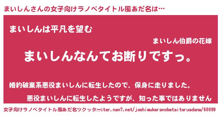 | 男性向けラノベタイトル風あだ名 | 『魔法科高校のまいしん』 |