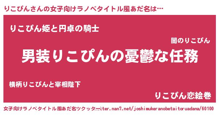 | 男性向けラノベタイトル風あだ名 | 『冴えないりこぴんの育てかた』 |