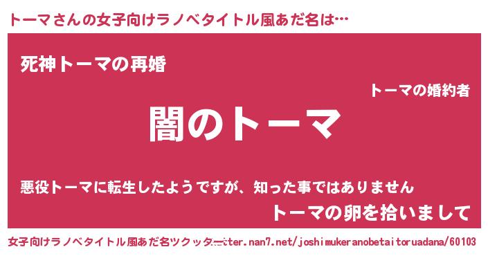 | 男性向けラノベタイトル風あだ名 | 『Re:トーマから始める異世界生活』 |
