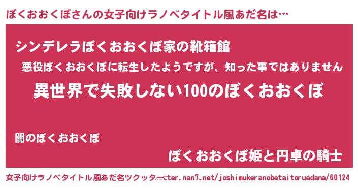 | 胡散臭い通販商品みたいなあだ名 | 『絶対に幸福をもたらす水素水…その名も「ぼくおおくぼ」』 |