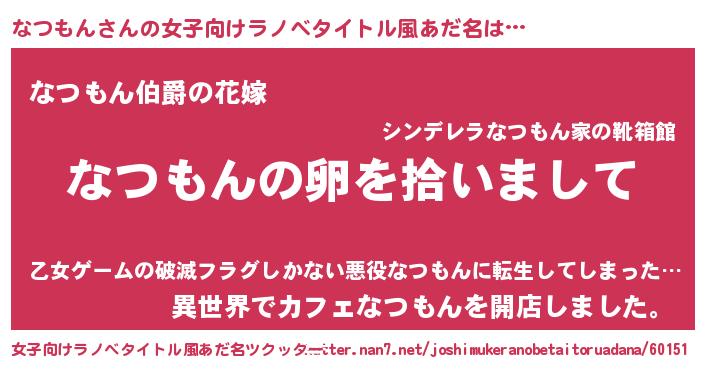 | 胡散臭い通販商品みたいなあだ名 | 『伝統あるネックレス…その名も「なつもん」』 |