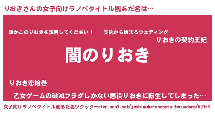 | 男性向けラノベタイトル風あだ名 | 『Re:りおきから始める異世界生活』 |