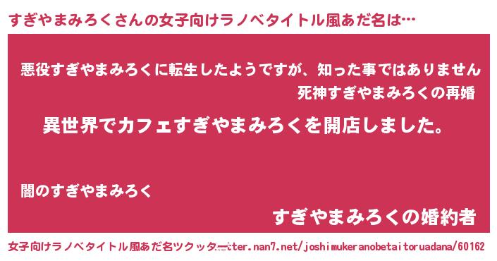 | 男性向けラノベタイトル風あだ名 | 『誰もが恐れるあのすぎやまみろくが、ぼくの専属メイドになるようです。』 |