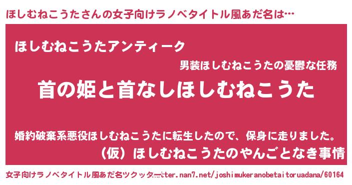 | ヘコむあだ名 | 『ほしふぇ~』『ほしむねこうた(震え声)』 |