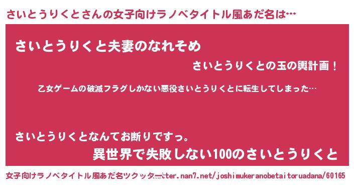 | 意味不明あだ名 | 『住所不定無職さいとうりくと(7歳)』 |