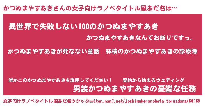 | 料理風あだ名 | 『かつぬまやすあきのカルパッチョ風』 |