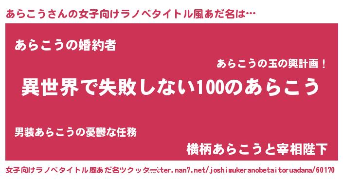| 胡散臭い通販商品みたいなあだ名 | 『絶対に幸福をもたらす招き猫…その名も「あらこう」』 |