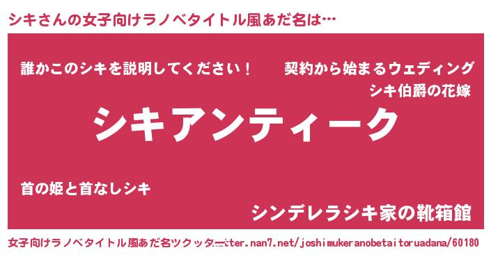 | 意味不明あだ名 | 『自称シキ』『ペロリンシキ』 |