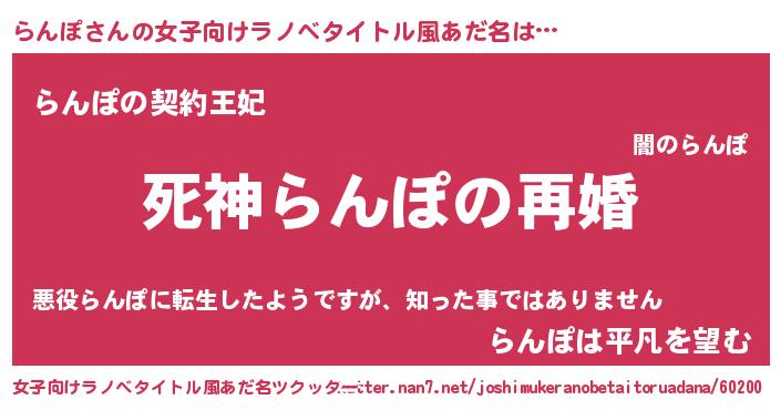 | 意味不明あだ名 | 『眠気覚ましガムらんぽ味』『自称らんぽ』 |