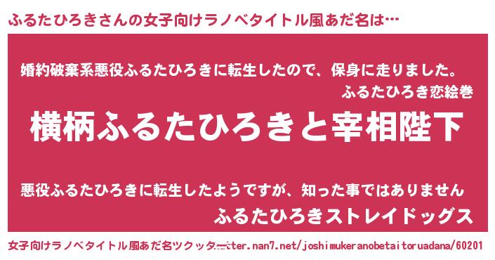 | 胡散臭い通販商品みたいなあだ名 | 『芸能人もオススメする高麗人参…その名も「ふるたひろき」』 |