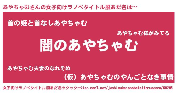 | 男性向けラノベタイトル風あだ名 | 『Re:あやちゃむから始める異世界生活』 |