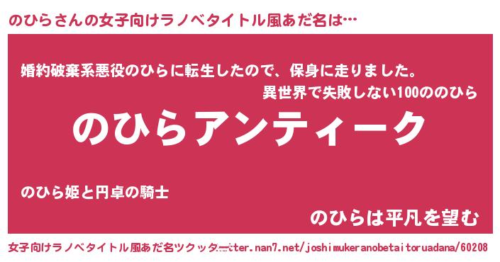 | 男性向けラノベタイトル風あだ名 | 『魔法科高校ののひら』 |
