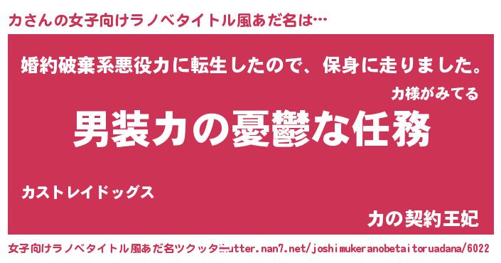 | 胡散臭い通販商品みたいなあだ名 | 『来世でも幸せになれる健康食品…その名も「カ」』 |