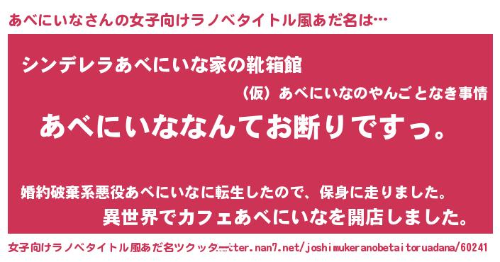 | 意味不明あだ名 | 『自称あべにいな』『永久保存あべにいな』 |