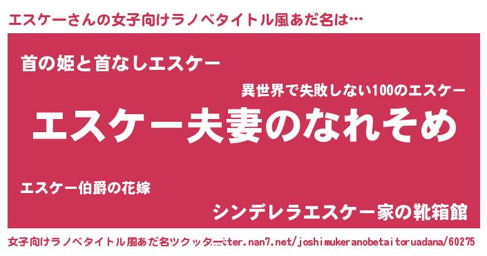 | 男性向けラノベタイトル風あだ名 | 『おまえをオタクにしてやるから、俺をエスケーにしてくれ! 』 |