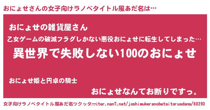 | 男性向けラノベタイトル風あだ名 | 『おにょせという概念が存在しない退屈な世界 』 |