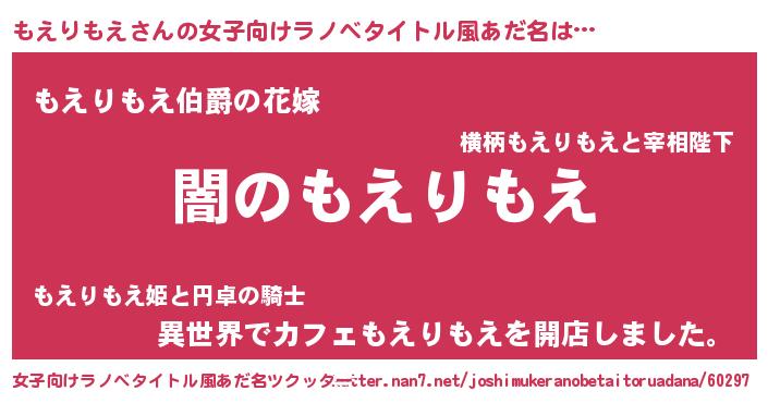 | 意味不明あだ名 | 『自称もえりもえ』『永久保存もえりもえ』 |