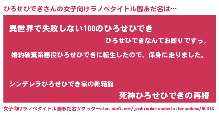 | 男性向けラノベタイトル風あだ名 | 『ヒロセヒデキスレイヤー』 |