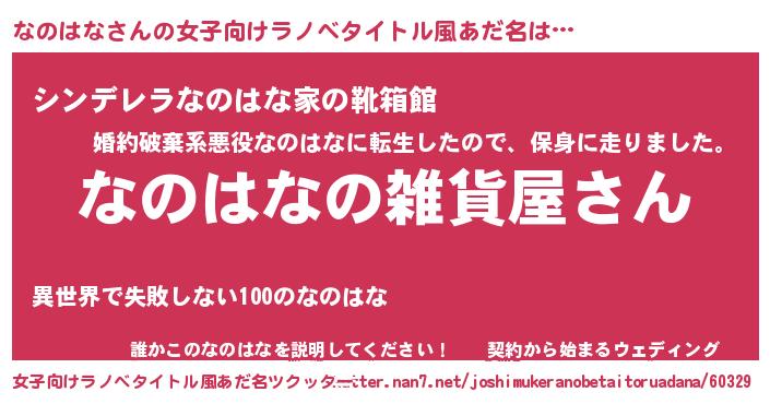 | 男性向けラノベタイトル風あだ名 | 『やはりなのはなの青春ラブコメはまちがっている 』 |